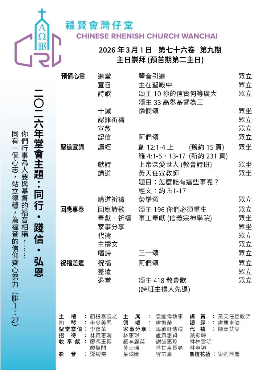 最新聚會消息請留意本堂網頁