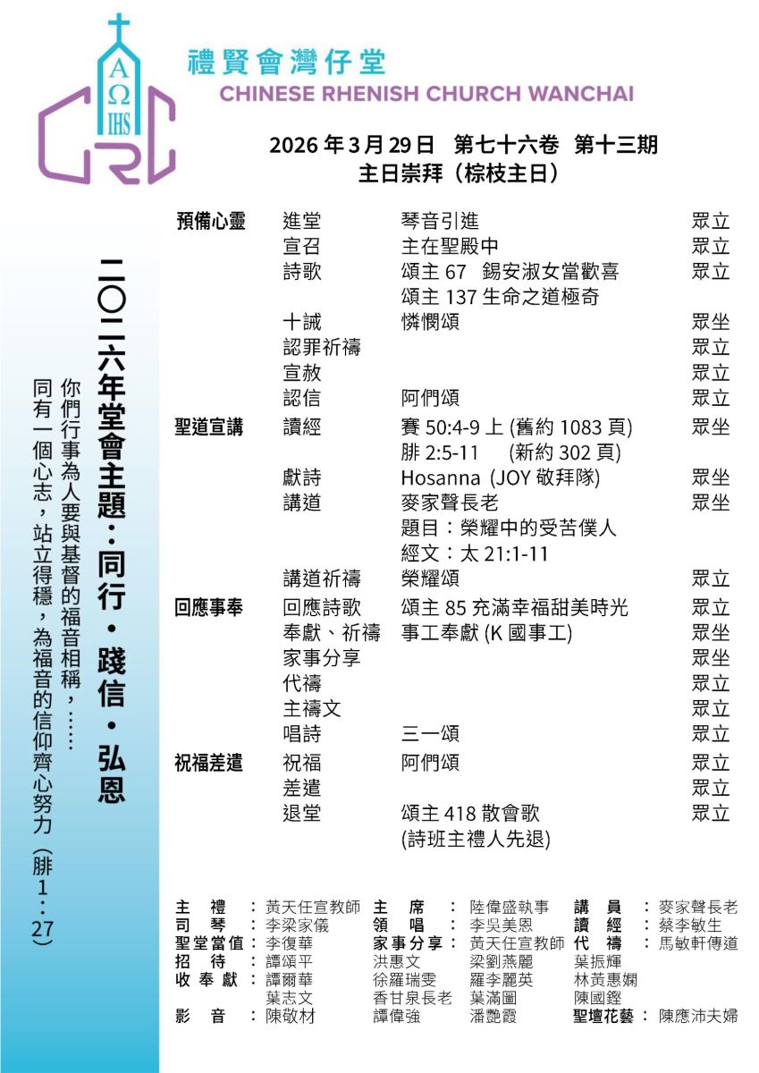 明日是棕枝主日,紀念主耶穌謙卑騎驢進耶路撒冷,眾人拿棕枝迎接祂。願我們敬拜祂,以祂為榜樣,謙卑受教,扶助鄰舍,作主忠僕。
