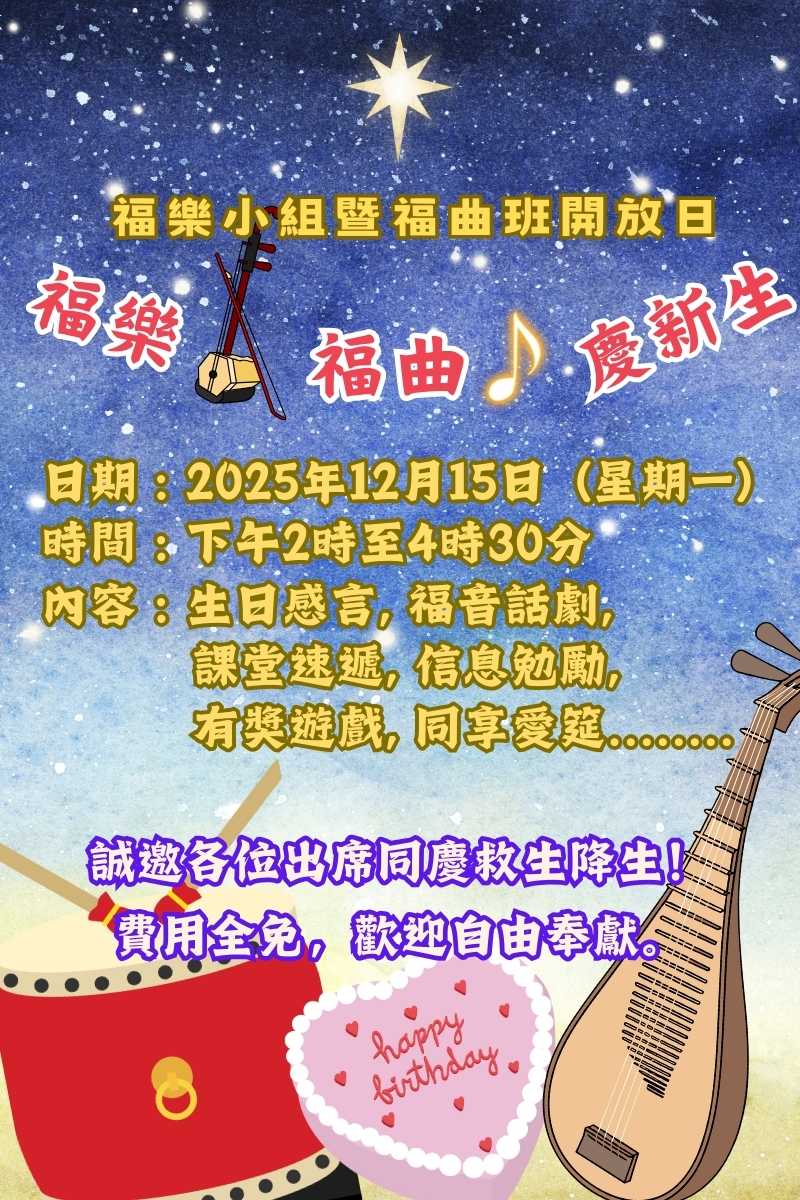 聖誕聯歡15/12(一)下午2:00-4:30舉行,報名:潘艷霞姊妹,14/12止。