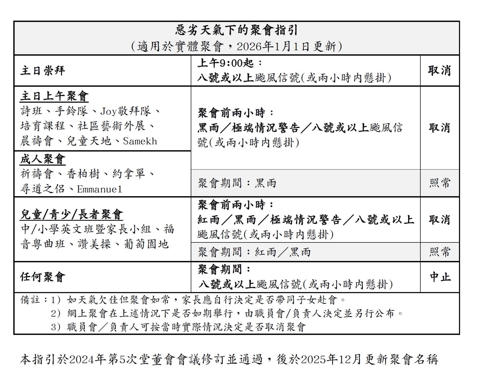 惡劣天氣下的聚會指引 2026年1月1日修訂